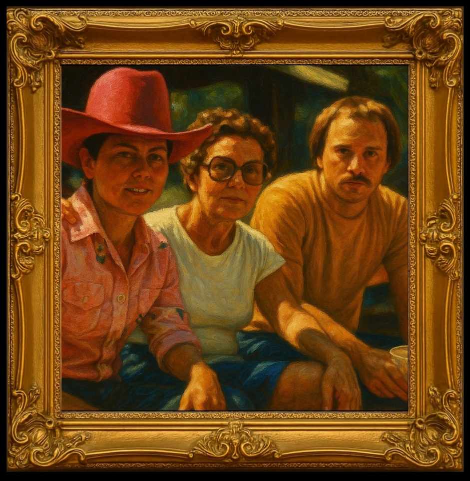 Painting of Barb, Mom(Rose), and Steve at Boyds farm mid 60's. Barb was there for a Horse Show