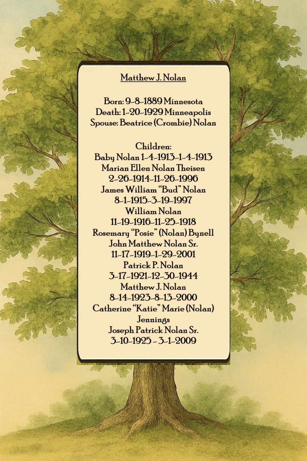 Matthew Nowlan 1889 - ? Family Tree