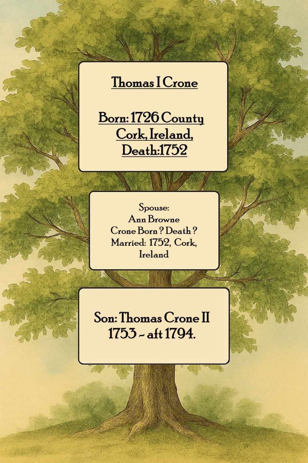 Thomas I Crone 1726 - 1752 Family Tree